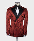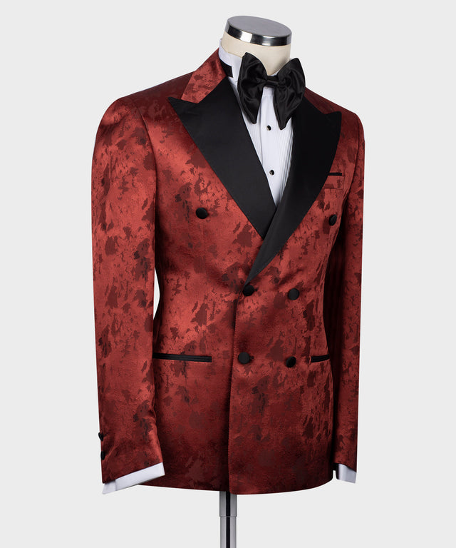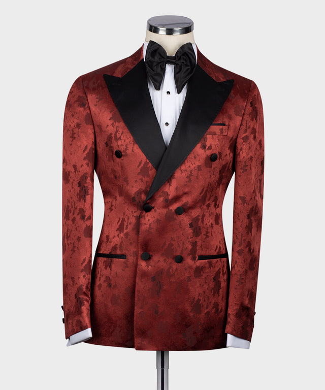 Black Satin Collar Dark Red Patterned Tuxedo