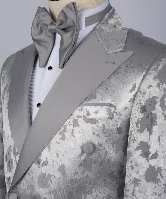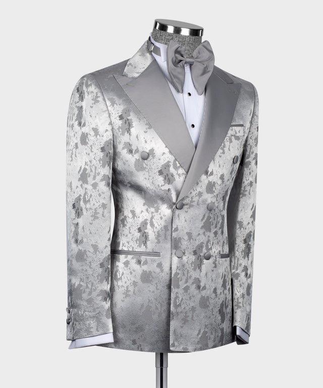 Grey Satin Collar Grey Patterned Tuxedo